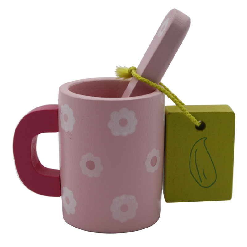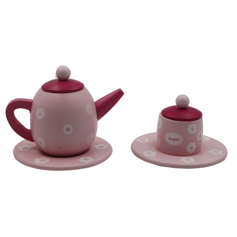 - 12 playing pieces including two cups, two saucers, two spoons, two teabags, one teapot, one sugar jar, one cake and one tray.